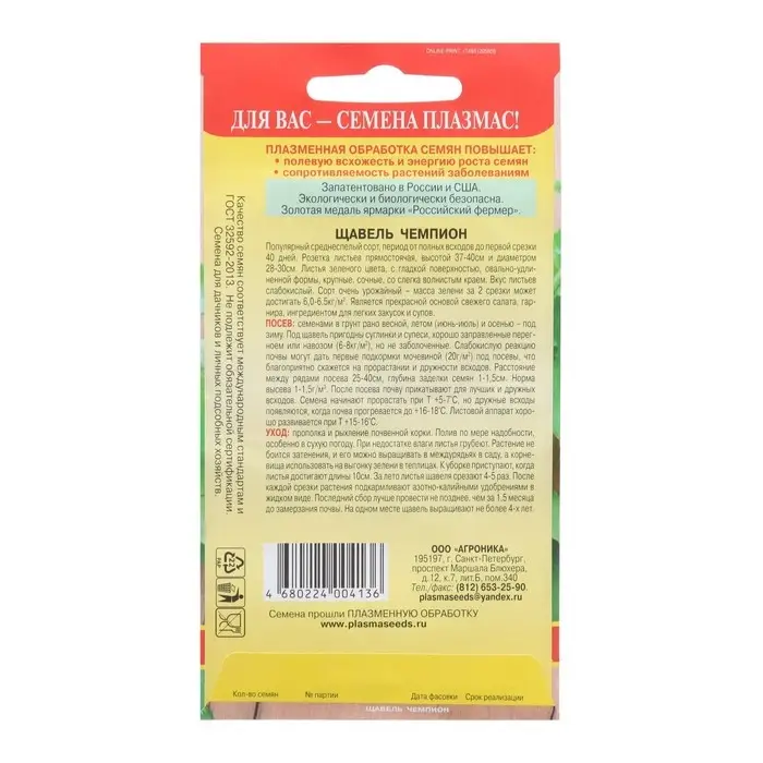 Семена Щавель "Крупнолистный" "Лидер", 0.5 г ,