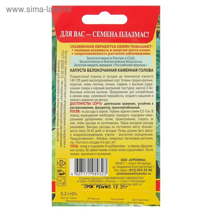 Семена Капуста б/к "Каменная голова", 0,3 г