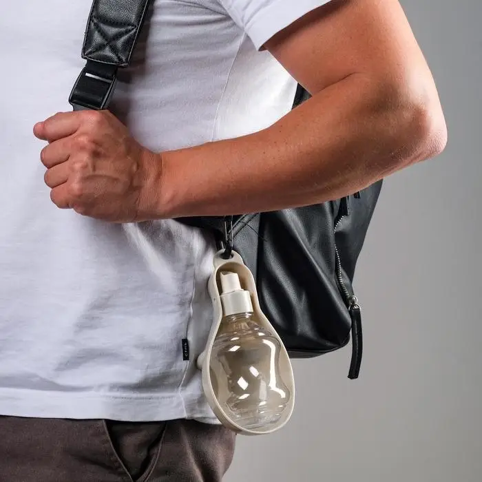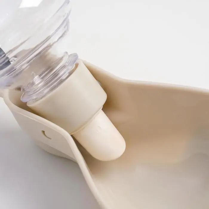 Бутылка для собак проста в использовании. Бутылка для собак откручивается от лотка, наполняется водой, затем снова прикручивается. Далее для поступления необходимого количества воды нужно нажать на бутылку и вода поступит в контейнер для питья собаки. В вертикальном положении поилка не протекает.