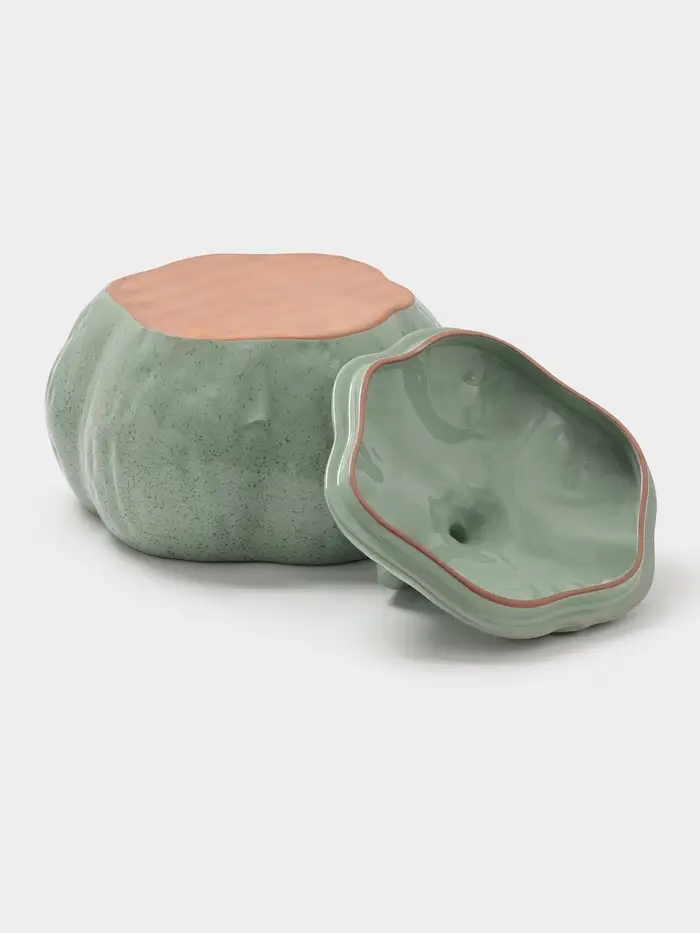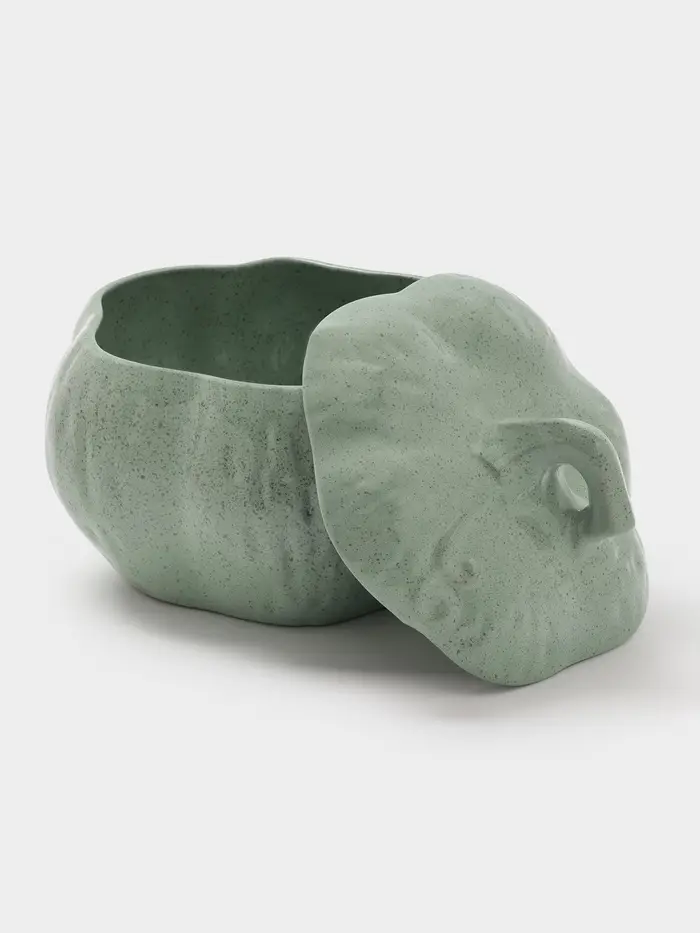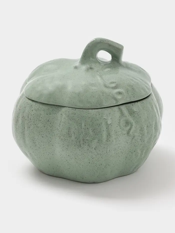 Керамический горшок в форме тыквы — не просто посуда для запекания, а центр притяжения на кухне и праздничном столе. Объём 2,4 л — в самый раз для семейного ужина: запечённые овощи, рагу, курица с картошкой или сытная запеканка. Зелёный цвет и натуральная форма добавляют блюду характер — и хозяйке — удовольствие от подачи.