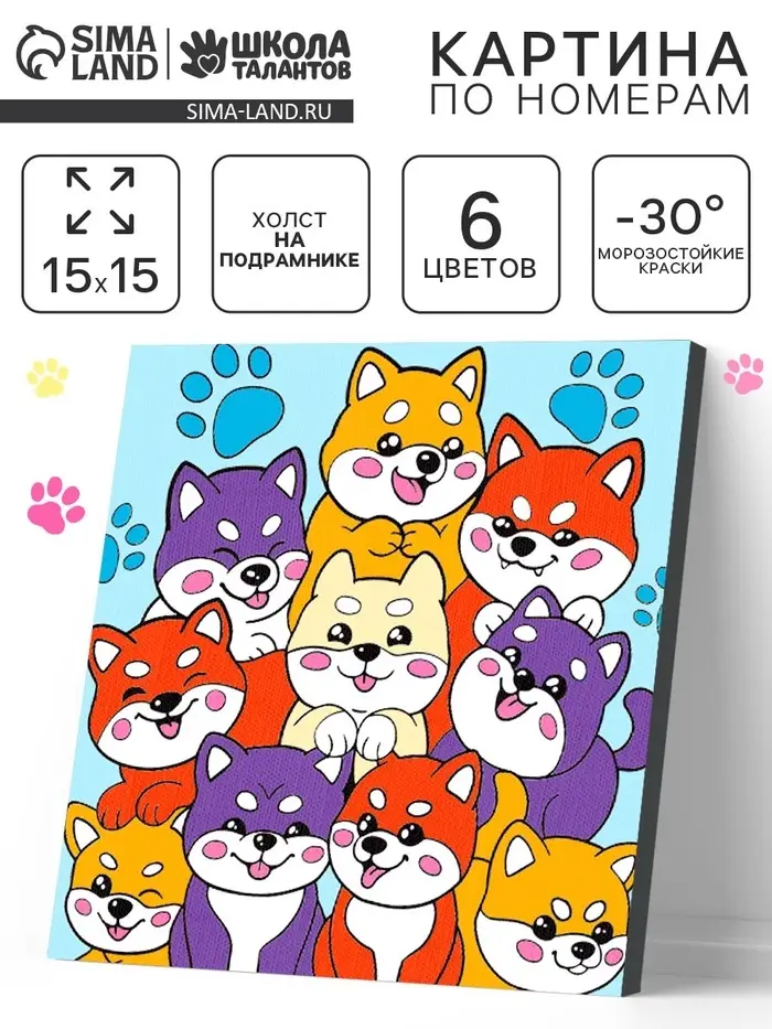 Картина по номерам "Малыши сиба-ину" 15х15 см.