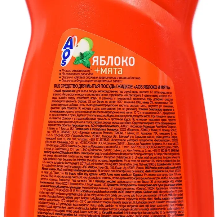 Средство для мытья посуды AOS Яблоко и мята, 900 мл
