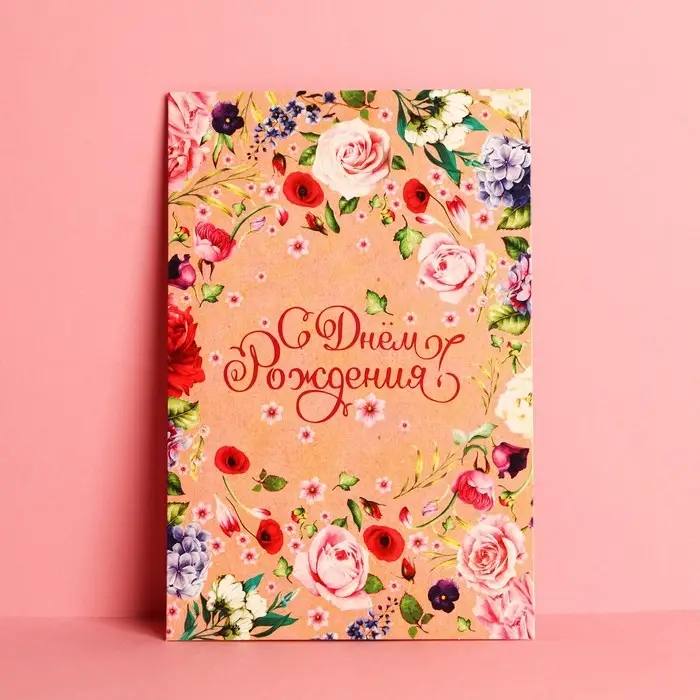 Открытка «С Днем Рождения», цветочки, крафт, 12 × 18 см