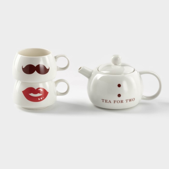 Набор керамический чайный «Чай для двоих», 3 предмета: чайник 400 мл, 2 чашки 200 мл