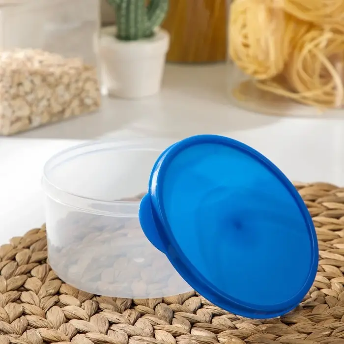 Контейнер круглый Доляна, пищевой, 500 мл, прозрачный, крышка синяя