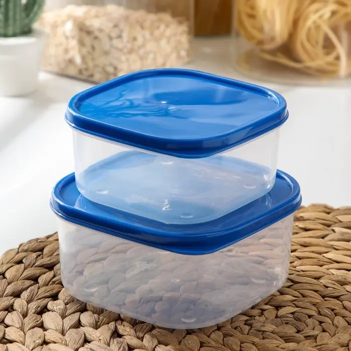 Набор контейнеров пищевых Доляна, квадратных, 2 шт: 450 мл, 700 мл, цвет голубой