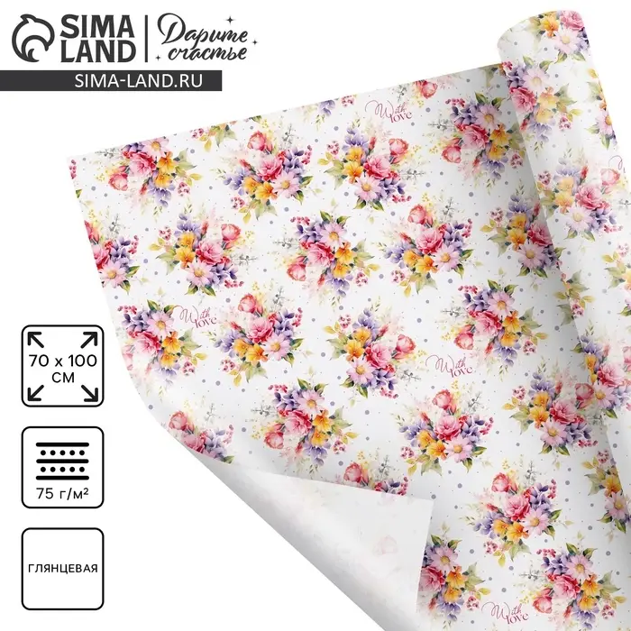Бумага упаковочная глянцевая «With love», 70 х 100 см