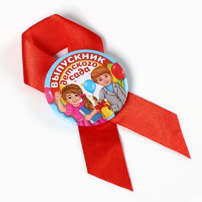 Значок с лентой "Выпускник детского сада", диам 4,5 см, набор 5 шт