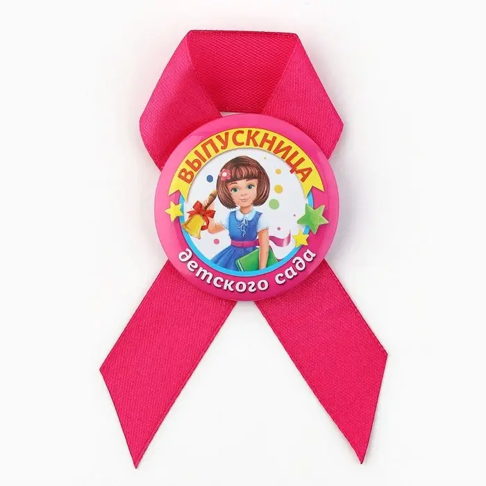 Значок с лентой "Выпускница детского сада", диам 4,5 см, набор 5 шт