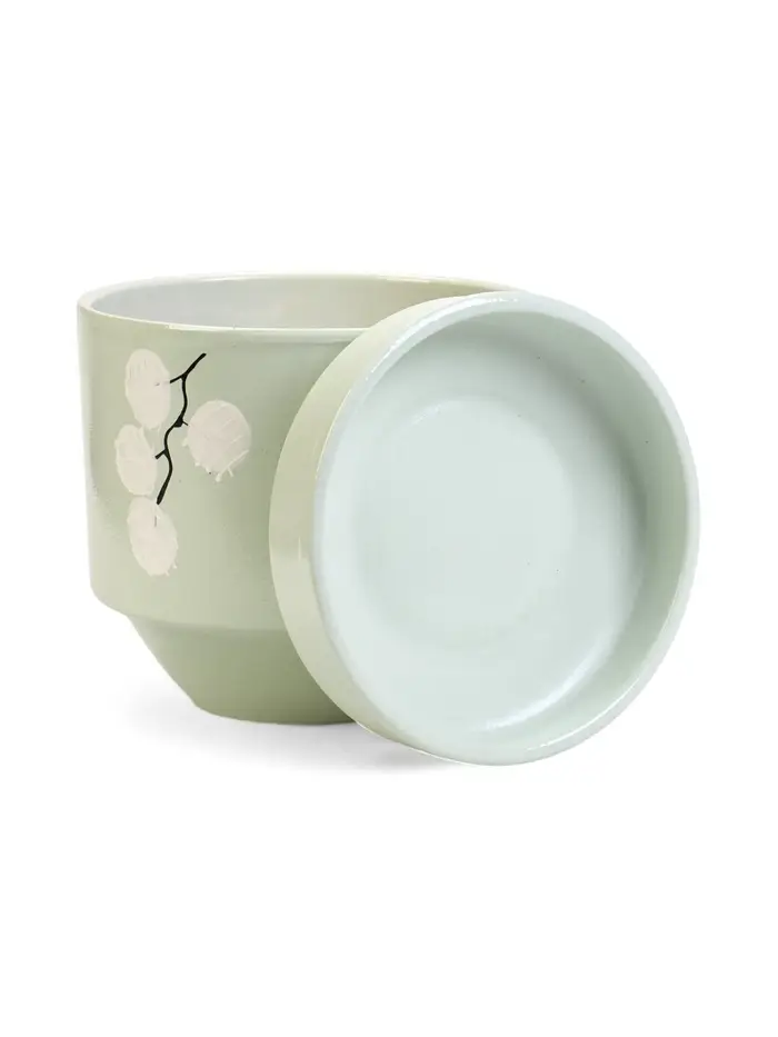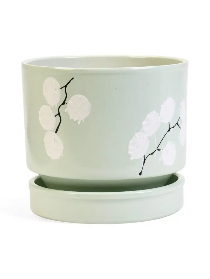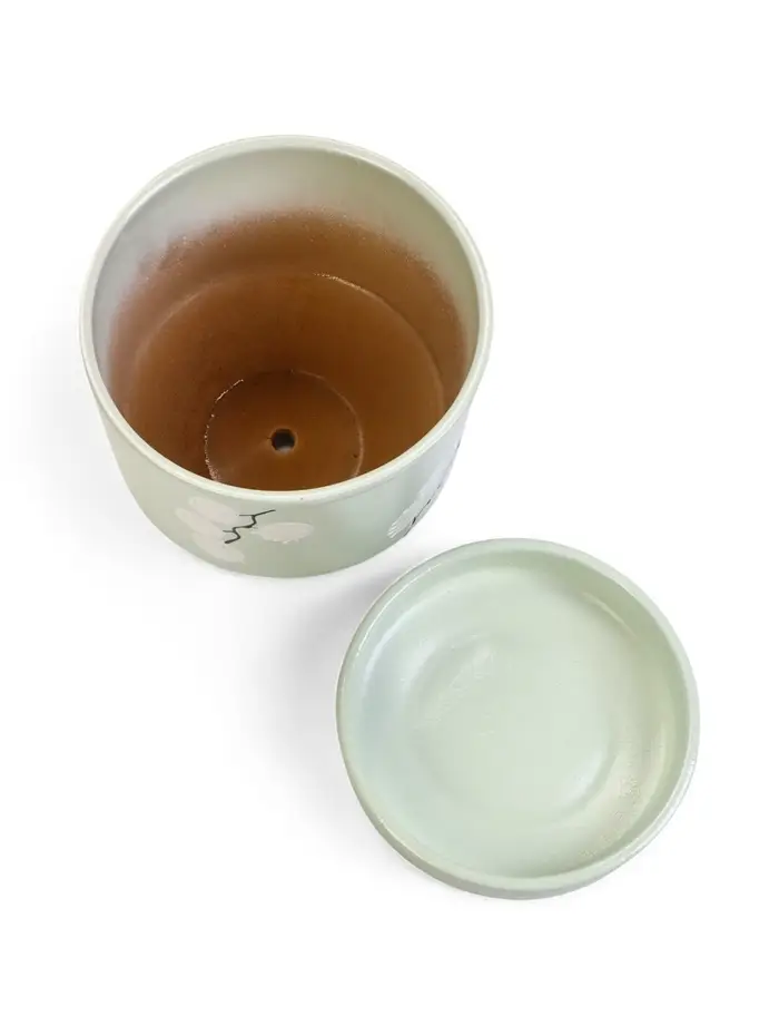 Горшок цветочный с поддоном 3,4 л, керамика "Листья" (М)