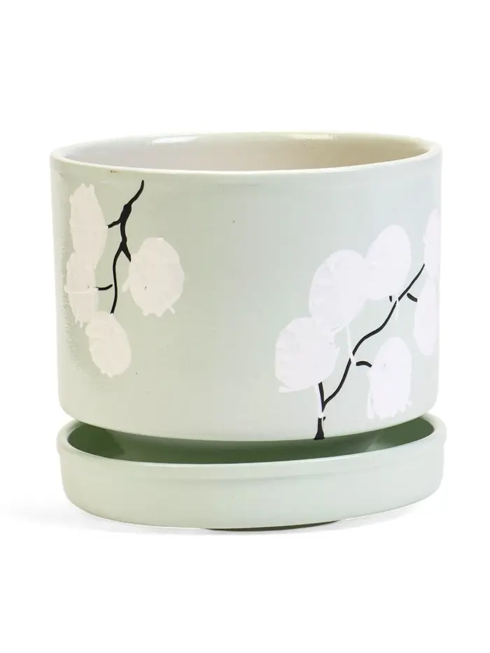Горшок цветочный с поддоном 1,7 л, керамика "Листья" (М)