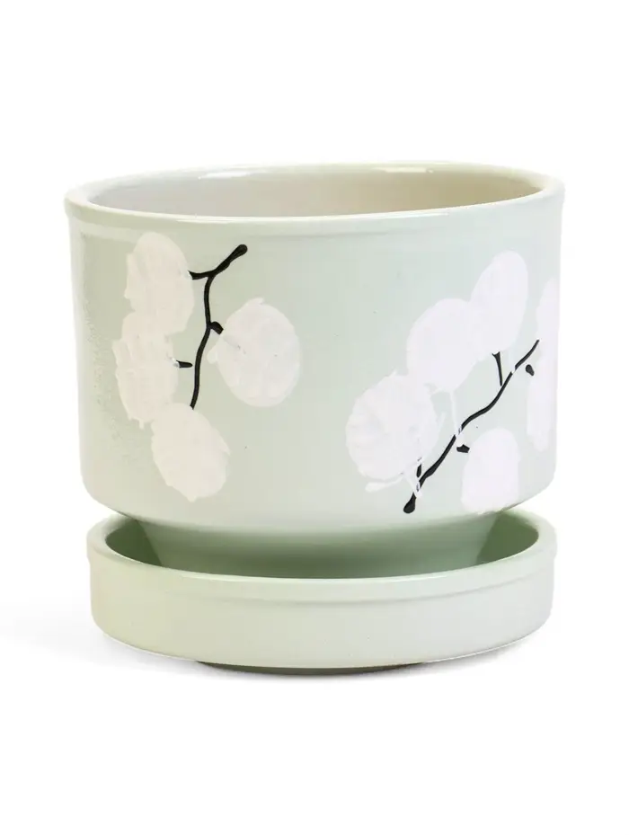 Горшок цветочный с поддоном 0,9 л, керамика "Листья" (М)