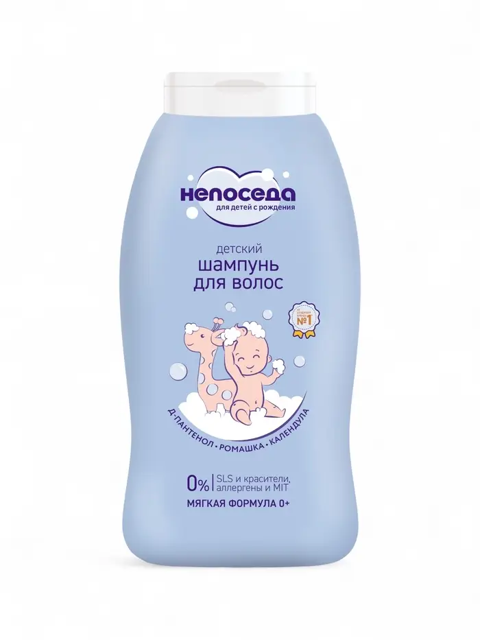Мягкий шампунь с календулой и ромашкой Непоседа создан специально для ухода за первыми локонами и нежной кожей головы новорожденных.