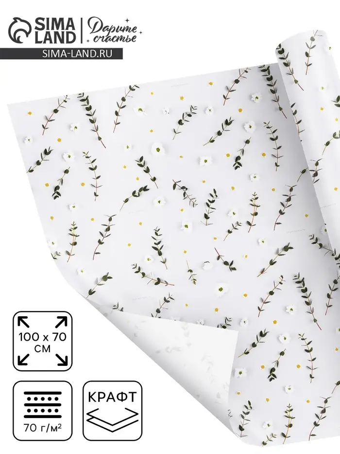Бумага упаковочная крафтовая «Цветы», 70 х 100 см