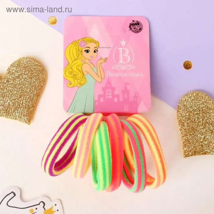 Резинка для волос "Махрушка полоска" (набор 6 шт) яркость