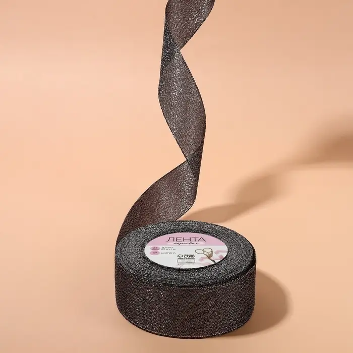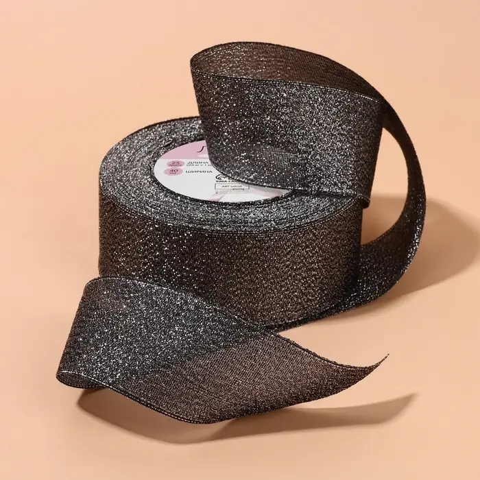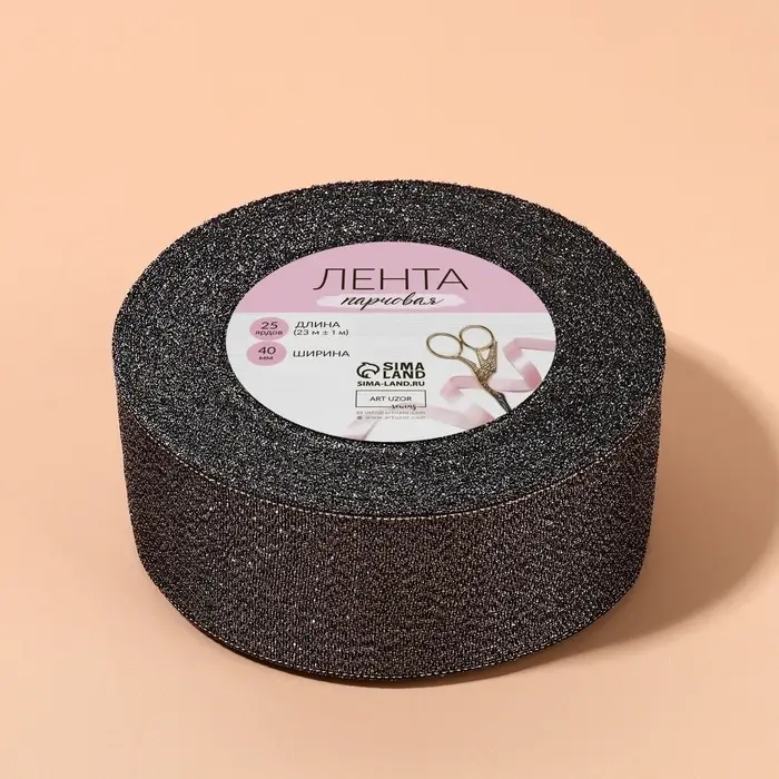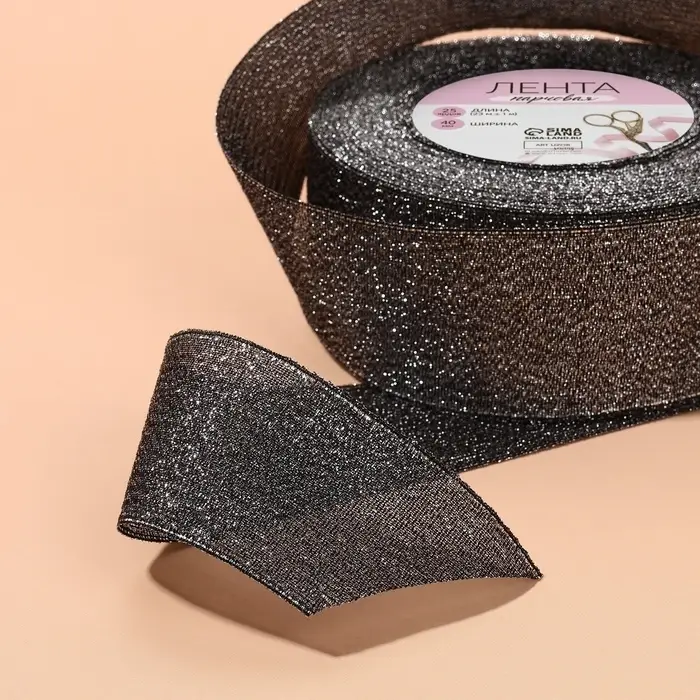 Лента парчовая, 40 мм, 23 ± 1 м, цвет чёрный №029
