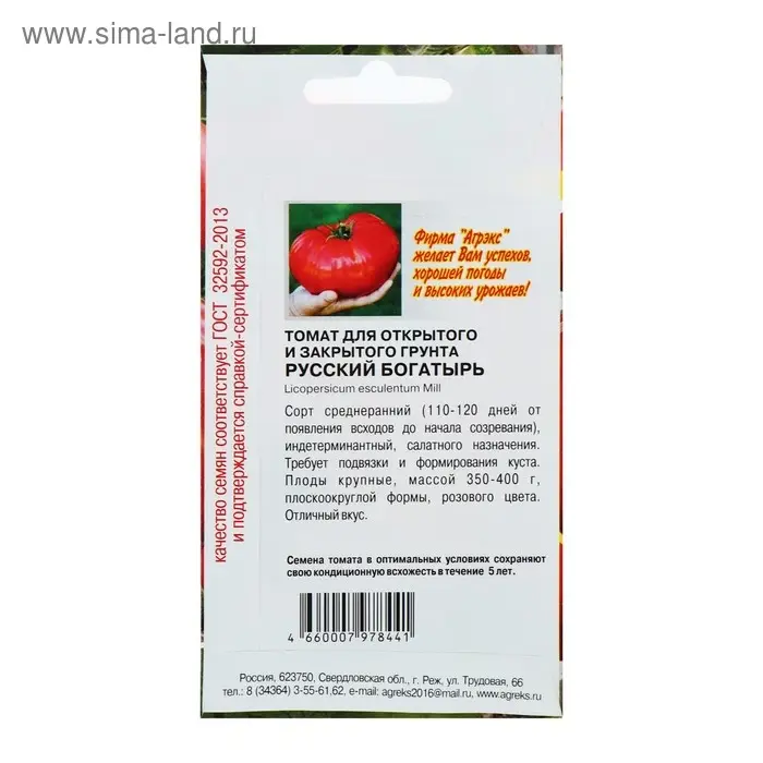 Семена Томат "Русский богатырь", среднеранний, 20 шт