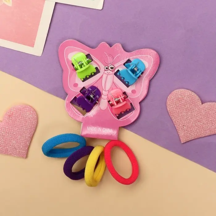 Набор для волос "Бабочка" (4 краба, 4 резинки) яркий глянец