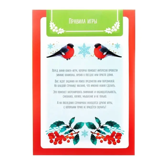 Не знаете, чем занять ребёнка в зимние каникулы? В этой книге вас ждёт множество картинок, в которых нужно найти отличия. А в качестве бонуса — дополнительные игры, в которые можно сыграть зимой дома, на улице или в поездке.