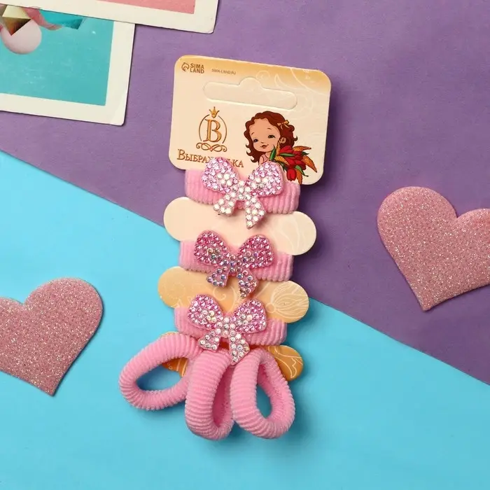 Резинка для волос "Лола" (набор 6 шт) бантик сияние, светло-розовый