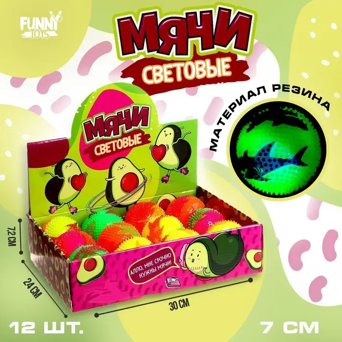 Мяч детский резиновый световой «Авокадо», цвета МИКС, в шоубоксе
