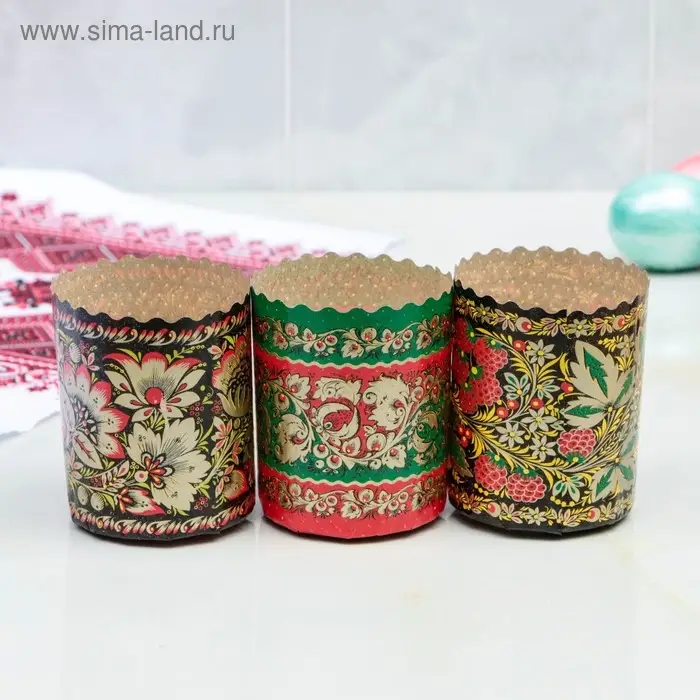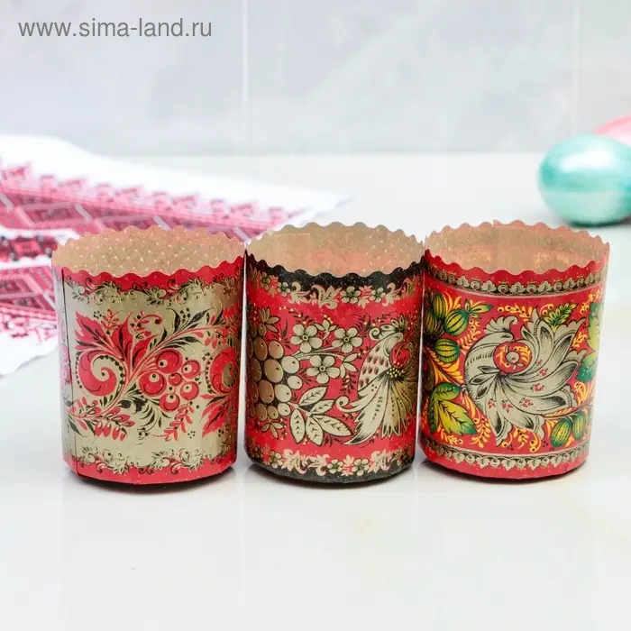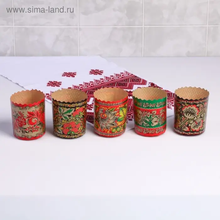 Форма бумажная для кулича «Хохлома», 70×85 мм, МИКС