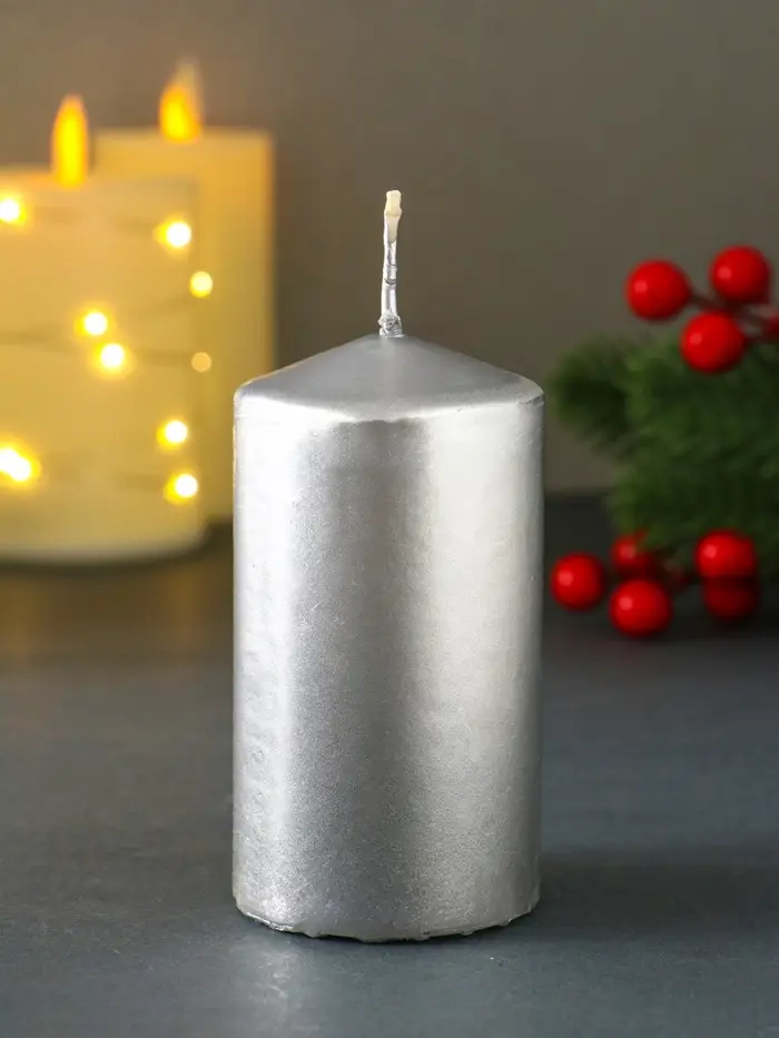 Свеча-столбик новогодняя 100х50 см, цв. серебряный