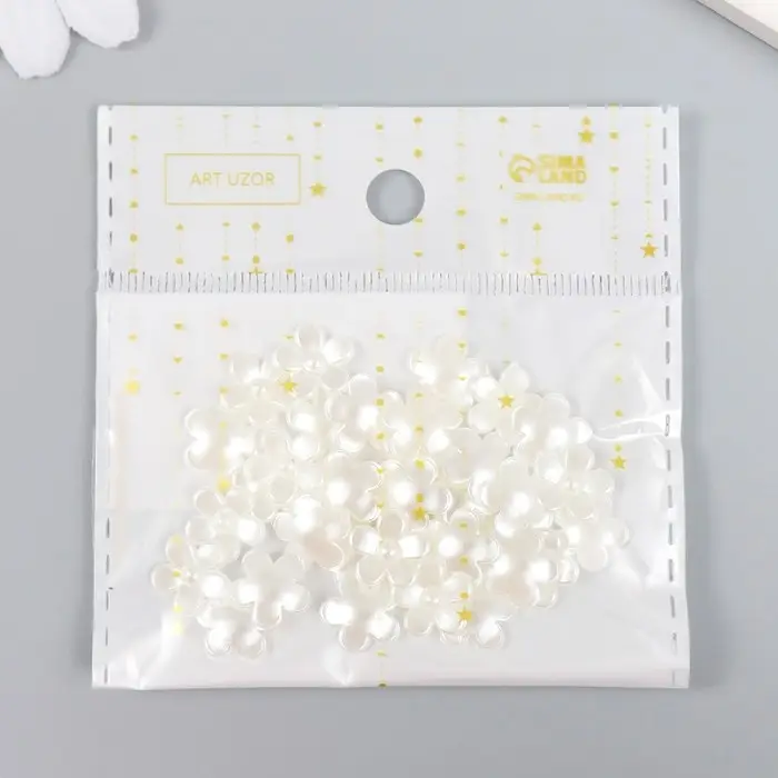 Декор для творчества пластик "Цветочек" жемчужный набор 35 шт 0,9х0,9 см