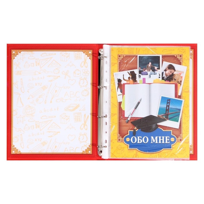 Папка-портфолио А4, Calligrata "Веселая школа", пластиковая, на 4 кольцах, для школьника, 20 файлов