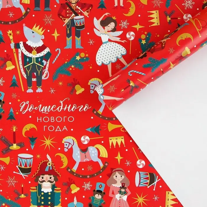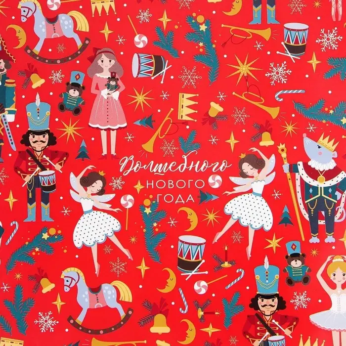 Упаковочная бумага на новый год «Щелкунчик», 70 х 100 см, глянцевая