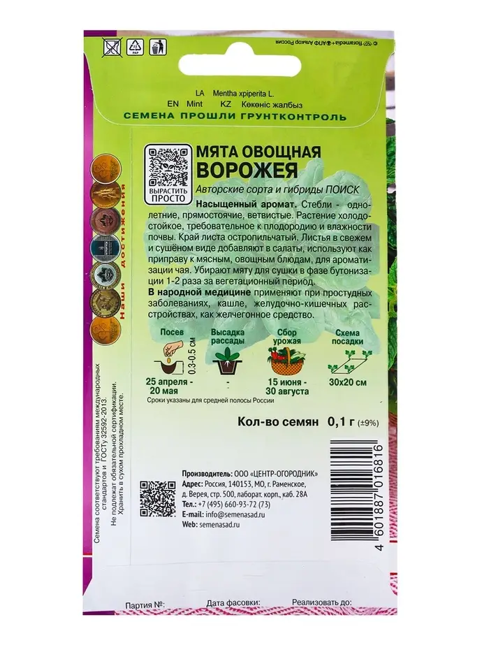 Семена Мята мексиканская "Янтарная свежесть", ц/п, 0,05 г