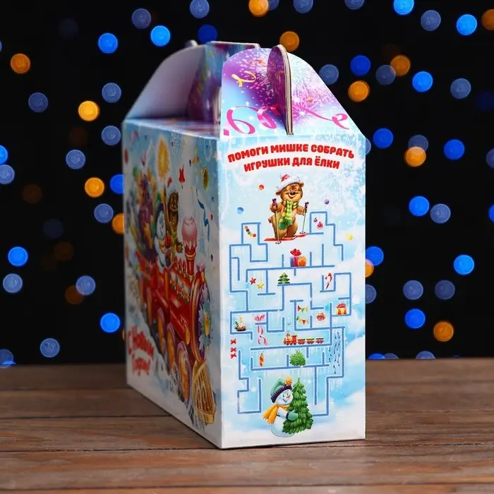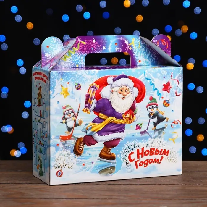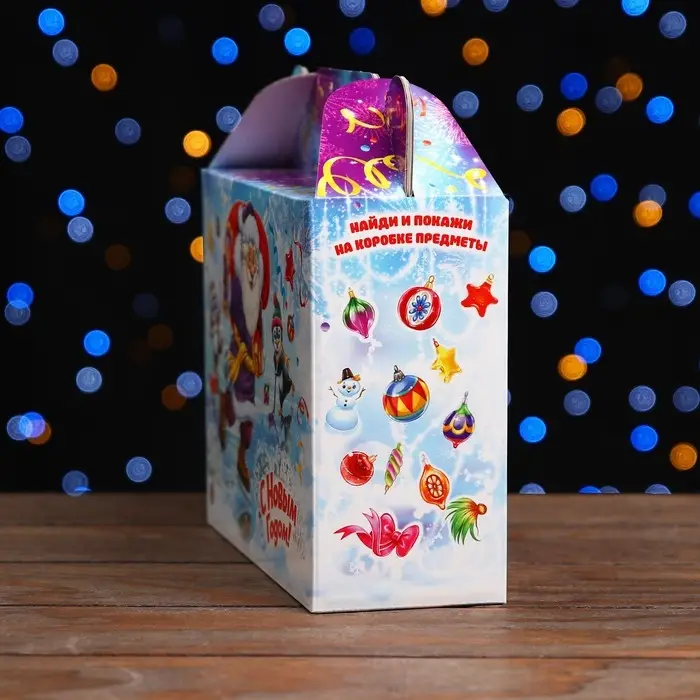 Праздничный дизайн: На коробке изображены яркие и праздничные новогодние мотивы. Она создает атмосферу праздника с первого взгляда.