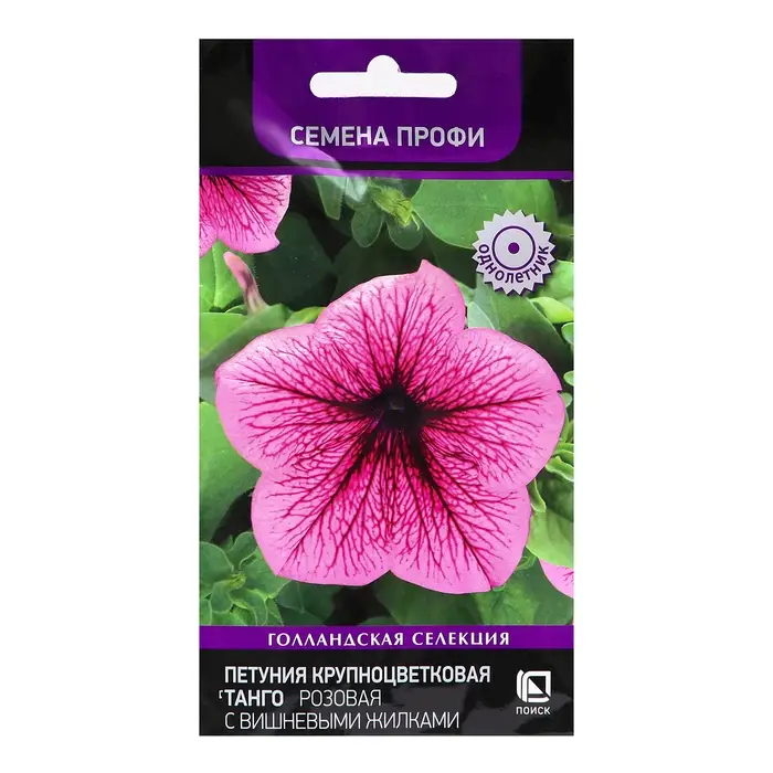 Яркий акцент на клумбе! Растения компактные, хорошо ветвящиеся, выравненные по габитусу. Высота растения – 25-35 см. Диаметр цветка 8-10 см. Окраска - розовая с вишневыми жилками. Цветение раннее, обильное с июня до осенних заморозков. Идеально подходит для озеленения. Используют для посадки в горшки, контейнеры и открытый грунт.Агротехника. Растение светолюбивое, засухоустойчивое, хорошо растет на любых питательных почвогрунтах. Посев семян на рассаду проводят в феврале-марте. Семена слегка вдавливают в почву, землей не присыпают. Посадочную емкость накрывают стеклом и ставят в освещенное место. При температуре почвы +18-20°C всходы появляются на 14-20 день. Сеянцы пикируют в фазе 2-х настоящих листьев. Рассаду высаживают в открытый грунт после окончания весенних заморозков.Семена соответствуют требованиям международных стандартов и ГОСТу РФ 12260-81