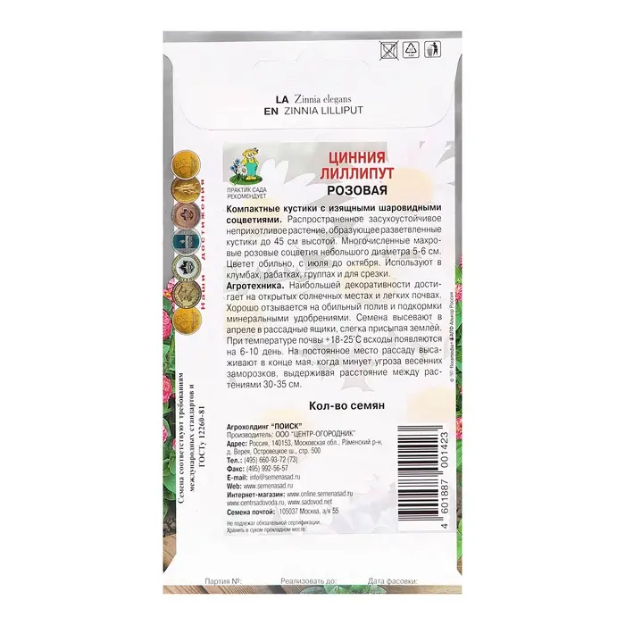 Семена цветов Цинния "Лиллипут", Розовая, 0,4гр.