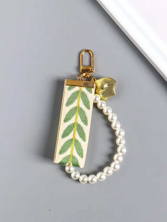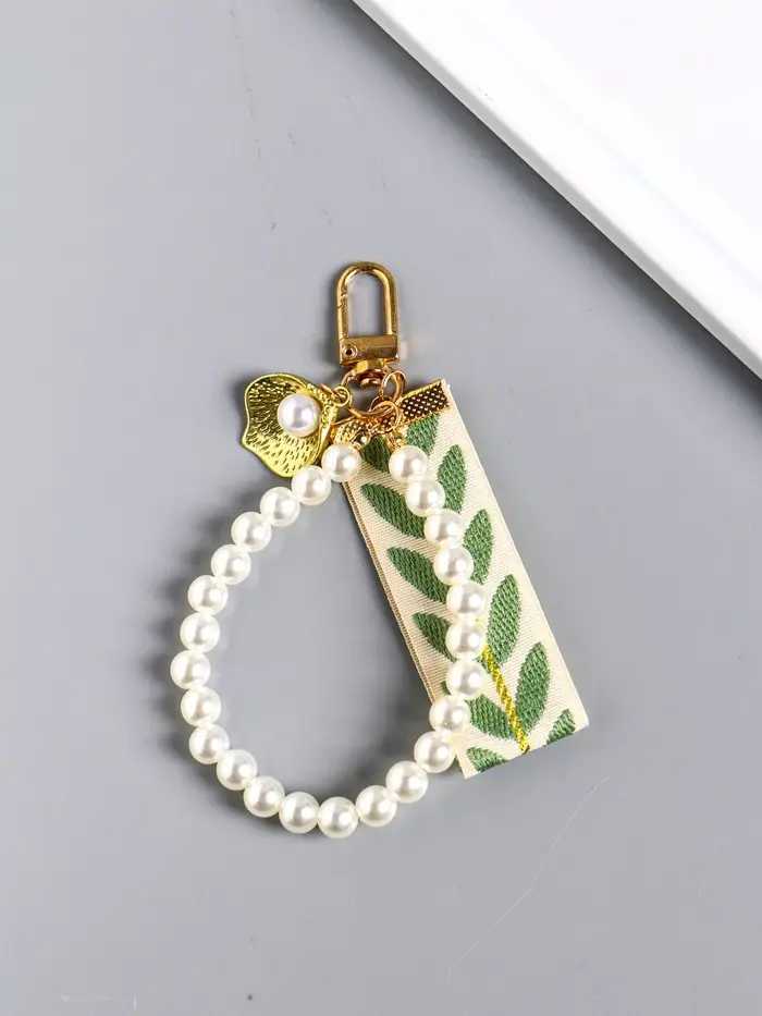 Брелок на карабине "Жемчужная нить, с ремешком и ракушкой" 12х9х1 см