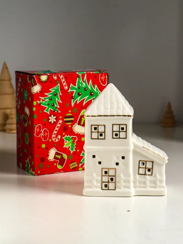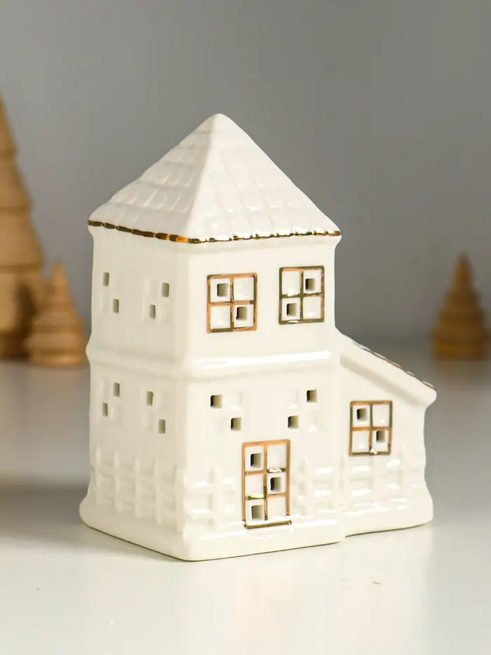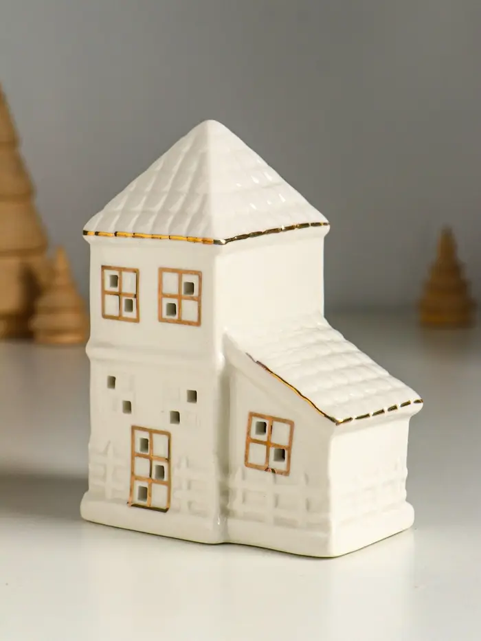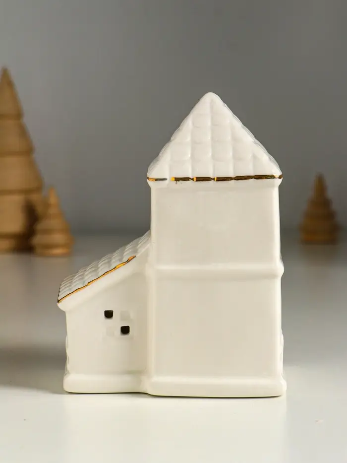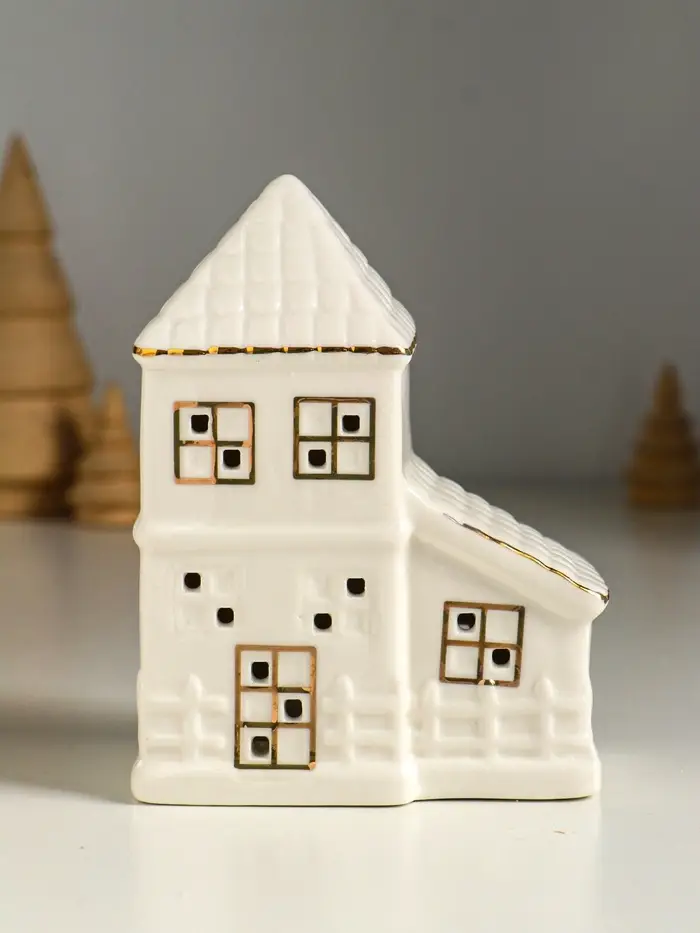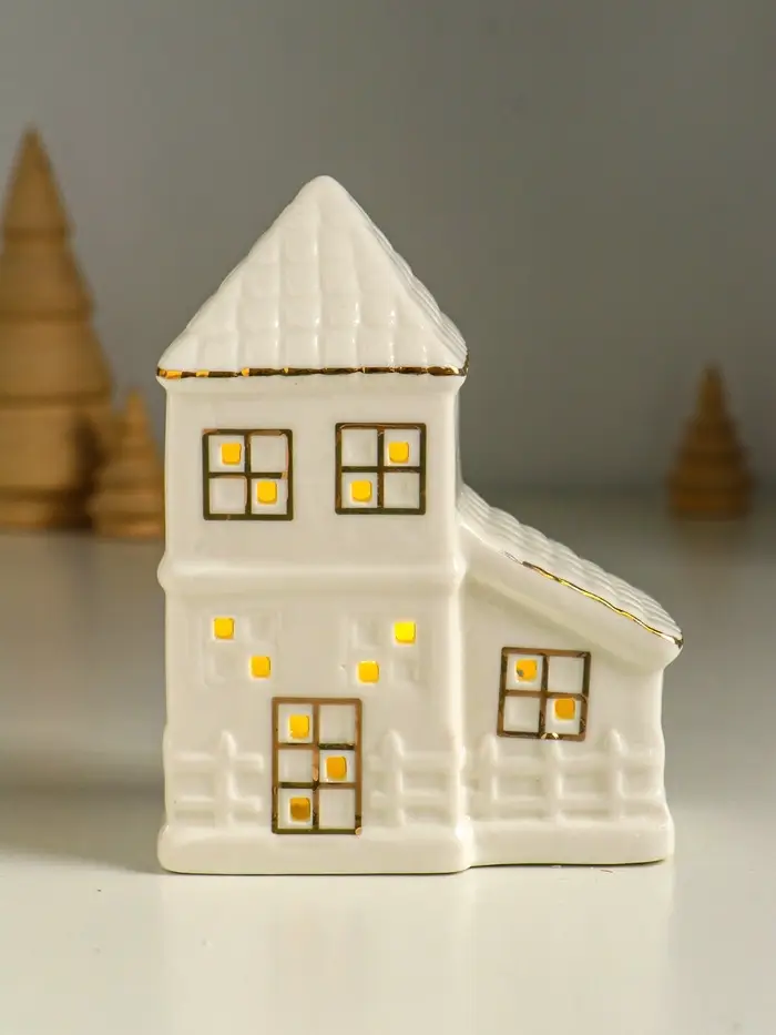 Сувенир керамика свет "Домик с верандой" белый с золотом 9,5х6х12,5 см