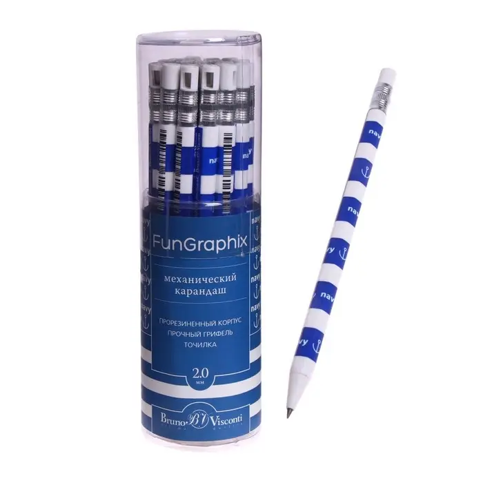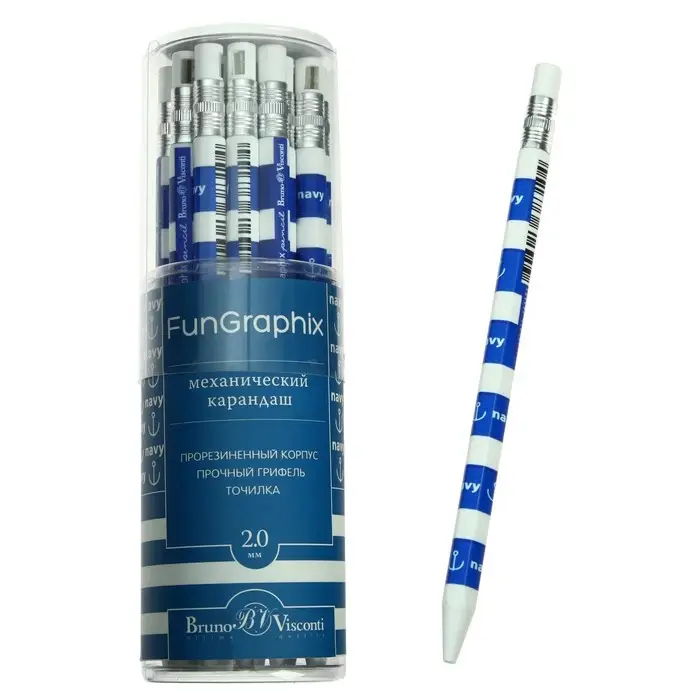 Карандаш механический цанговый 2.0 мм FunGraphix "Морская", НВ, шестигранный, пластиковый корпус, с точилкой