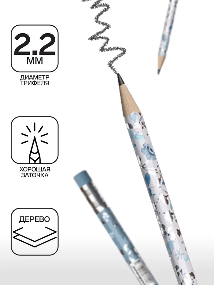 - Мягкая древесина и идеальная центровка грифеля гарантируют легкую заточку с экономным расходом карандаша.