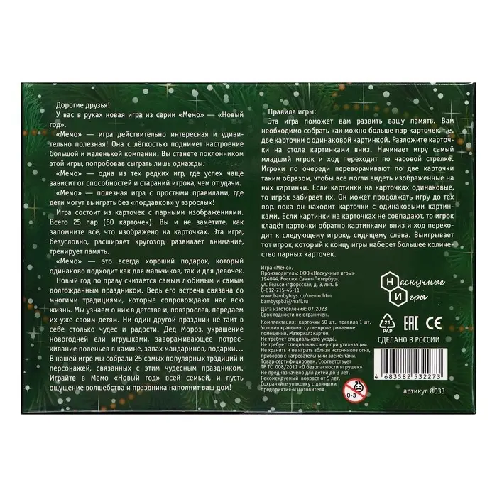 Настольная игра Мемо «Новый год», подвес на ёлку в подарок