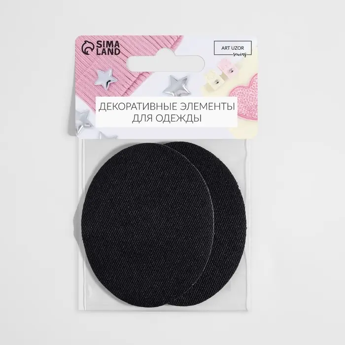 Заплатки для одежды, 10 × 7,5 см, клеевые, пара, цвет чёрный