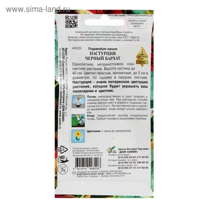 Семена цветов Настурция "Черный Бархат", 9 шт