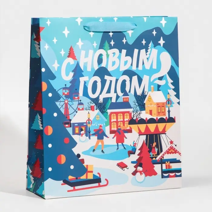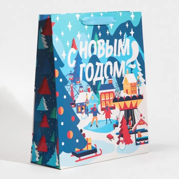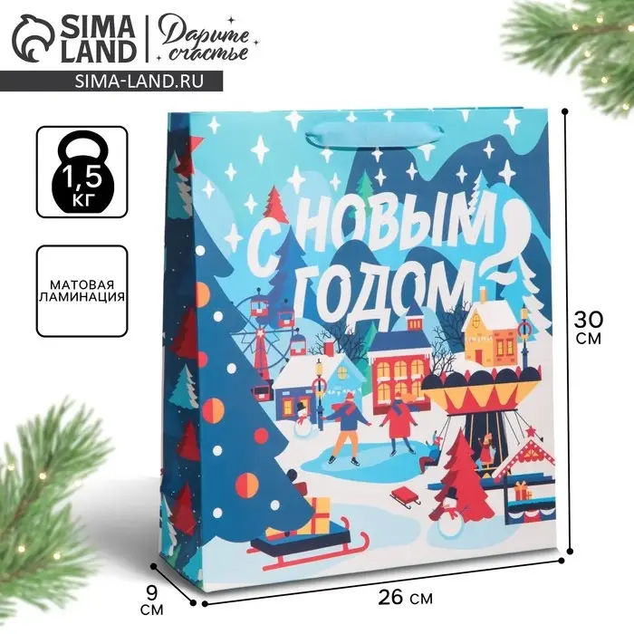 Пакет подарочный новогодний ламинированный «Зима в городе», M 26 х 30 х 9 см