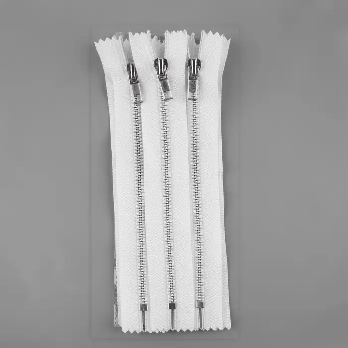 Металлические молнии подходят для вещей из плотного трикотажа, денима, тонкой кожи. Зубчики обработаны от ржавчины, текстильная лента прочная, не выцветает и не истирается.