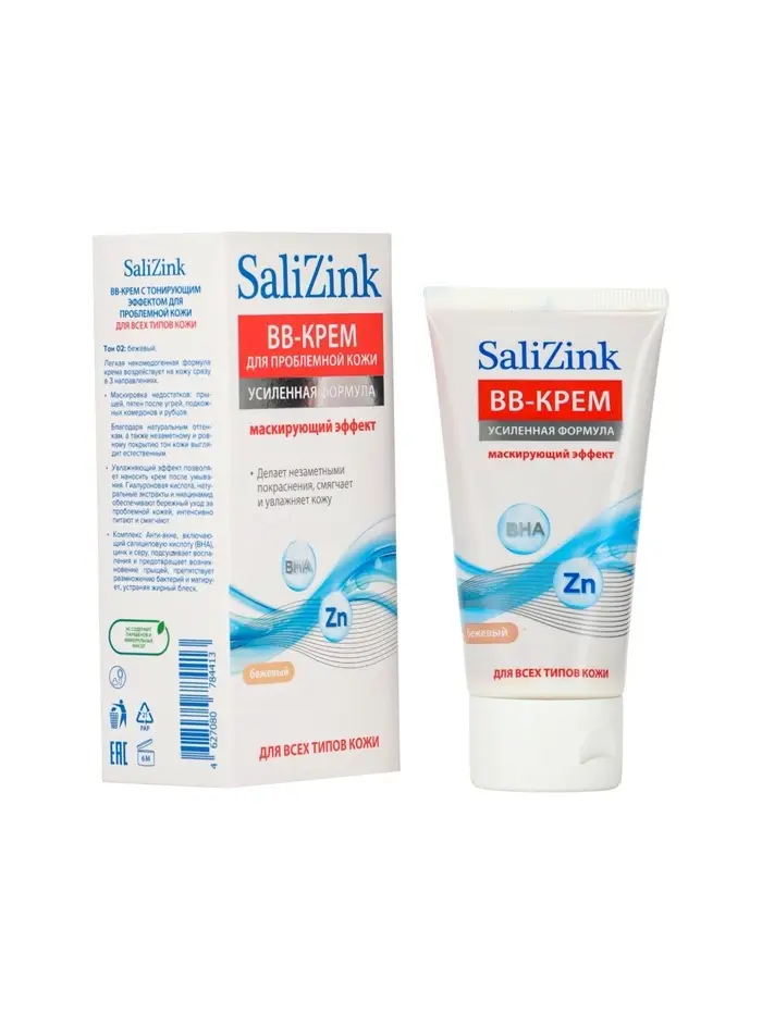 Крем-BB для проблемной кожи для всех типов кожи САЛИЦИНК с тонирующим эффектом тон 02 бежевый, 50 мл