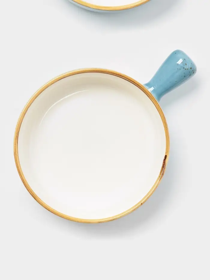 Набор из двух голубых кокотниц в горошек — спокойная сила для тех, кто готовит с вниманием к деталям. Каждая рассчитана на 500 мл: хватит на полноценную порцию жульена, овощного рагу, запечённых яиц или десерта для двоих. Фарфор без покрытия не вступает в реакцию с продуктами и не теряет вида даже после частого использования.