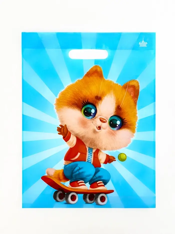 Пакет "Кот на спорте", полиэтиленовый с вырубной ручкой, л 40х31 см, 60 мкм
