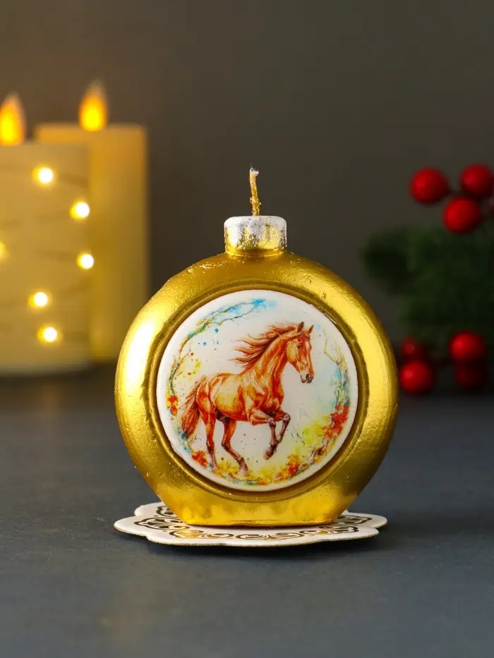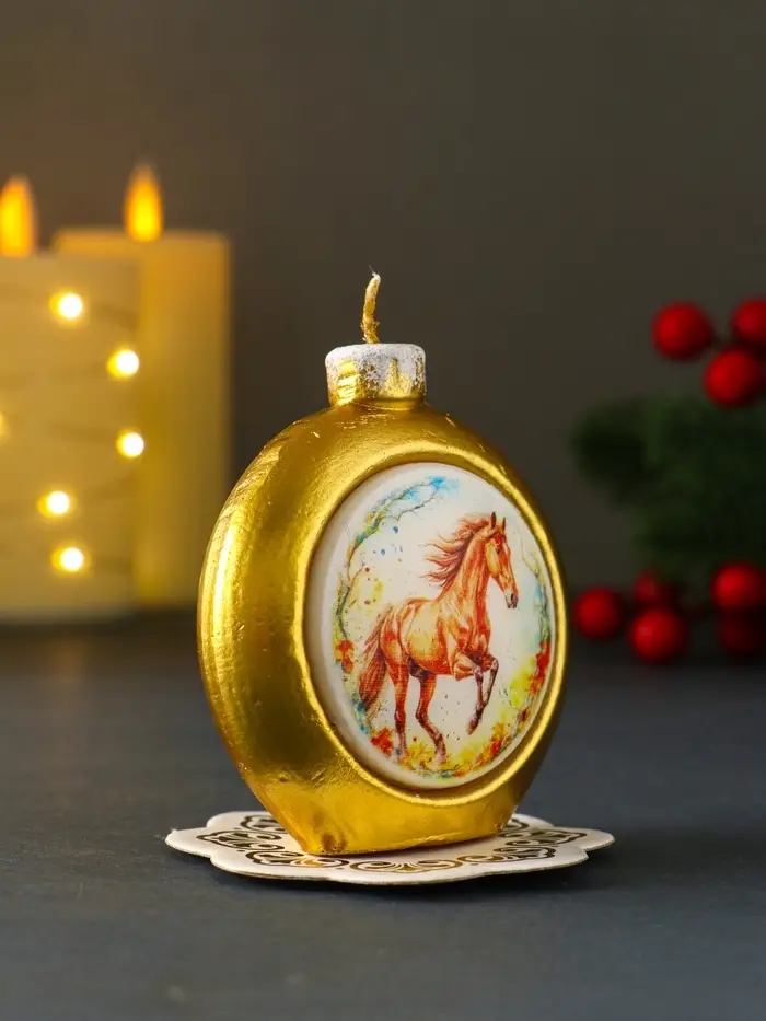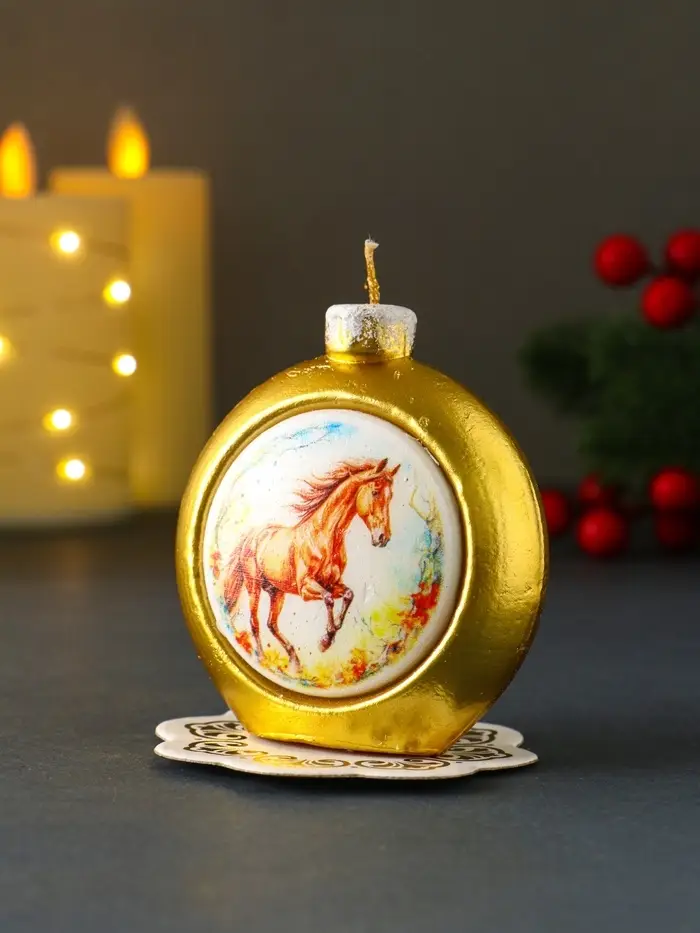 Свеча новогодняя "Шар. Конь" золотой 6,8х3,5х7,5 см