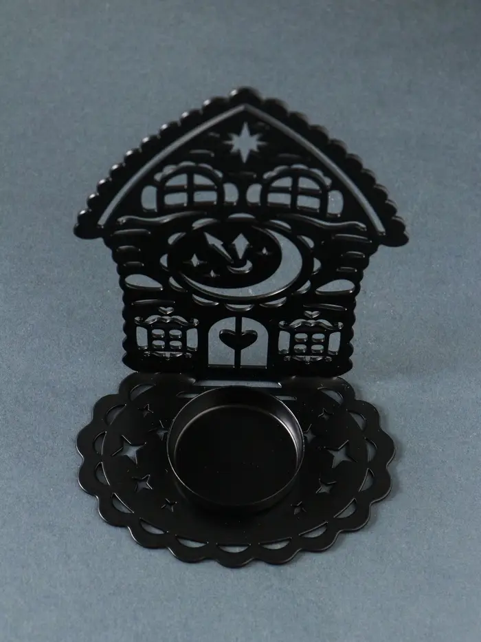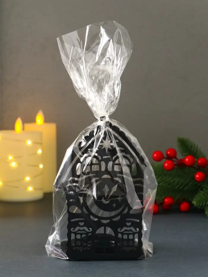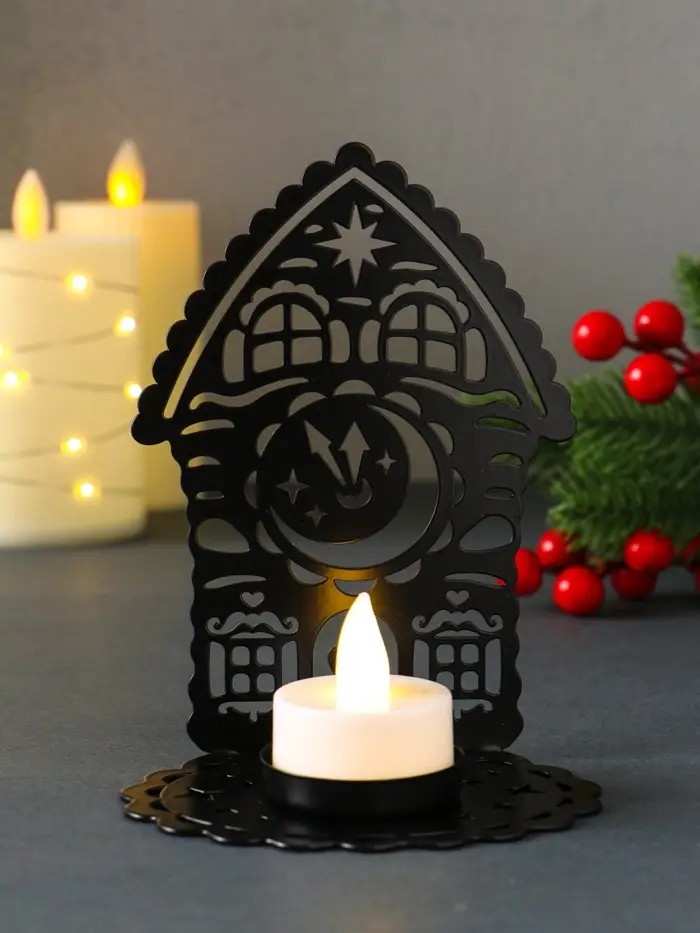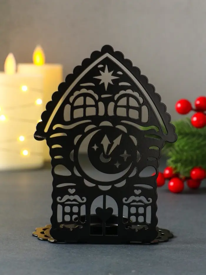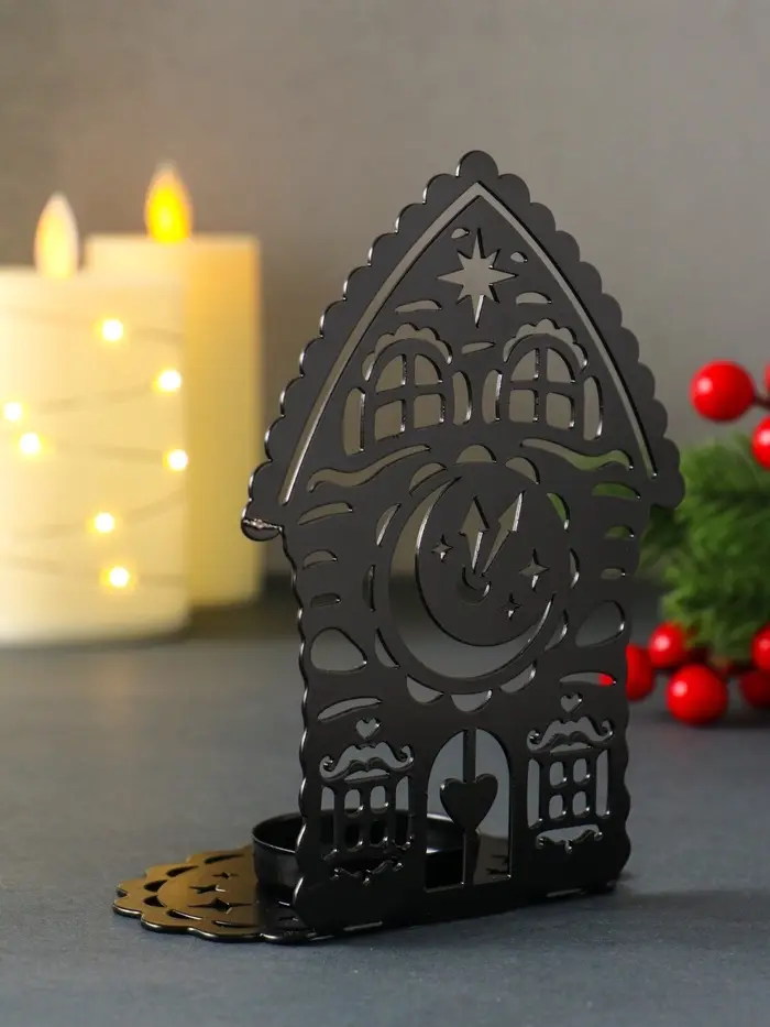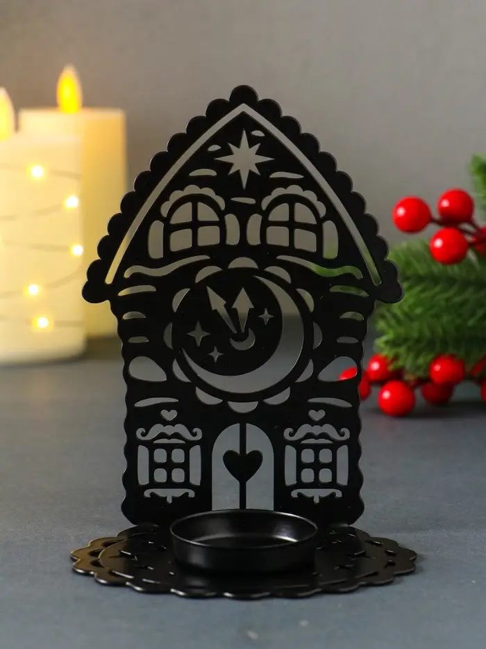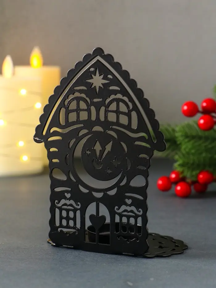 Подсвечник новогодний "Домик с часами" чёрный 6,7х10х13,5 см