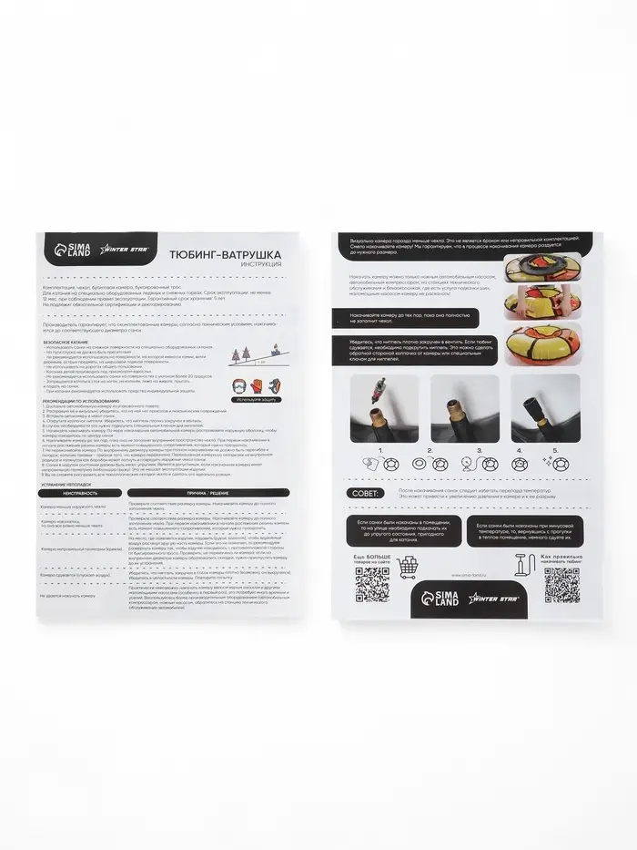 - Накачивать тюбинг следует при положительной температуре.
