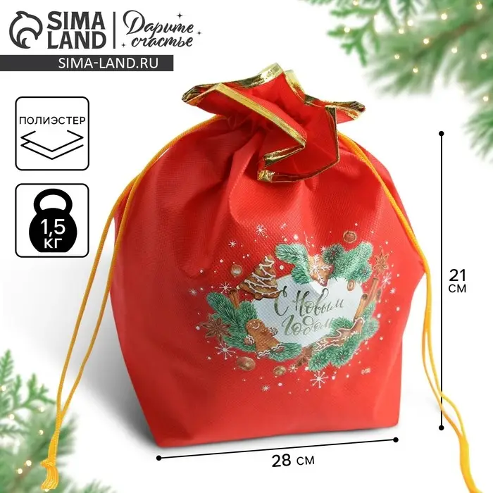 Мешок подарочный с термонаклейкой «Новогодний венок», 16 х 24 см , Новый год